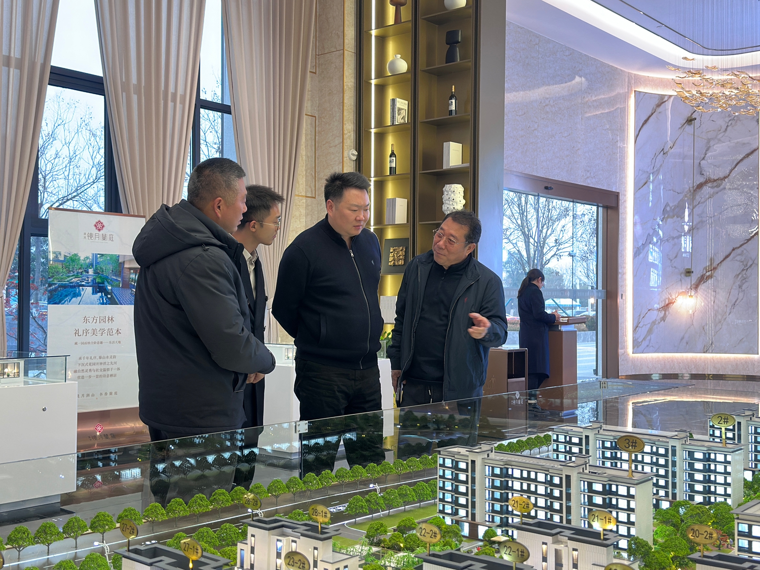 考察过程中,刘胜卿会长一行深入项目现场,实地查看了工程建设、户型设计、园林景观及配套设施等情况。刘胜卿会长对承天•镜月蘭庭项目的整体规划与品质打造给予了充分肯定,认为项目充分结合了钟祥本地的文化底蕴与改善性居住需求,展现出了良好的发展前景与市场竞争力。