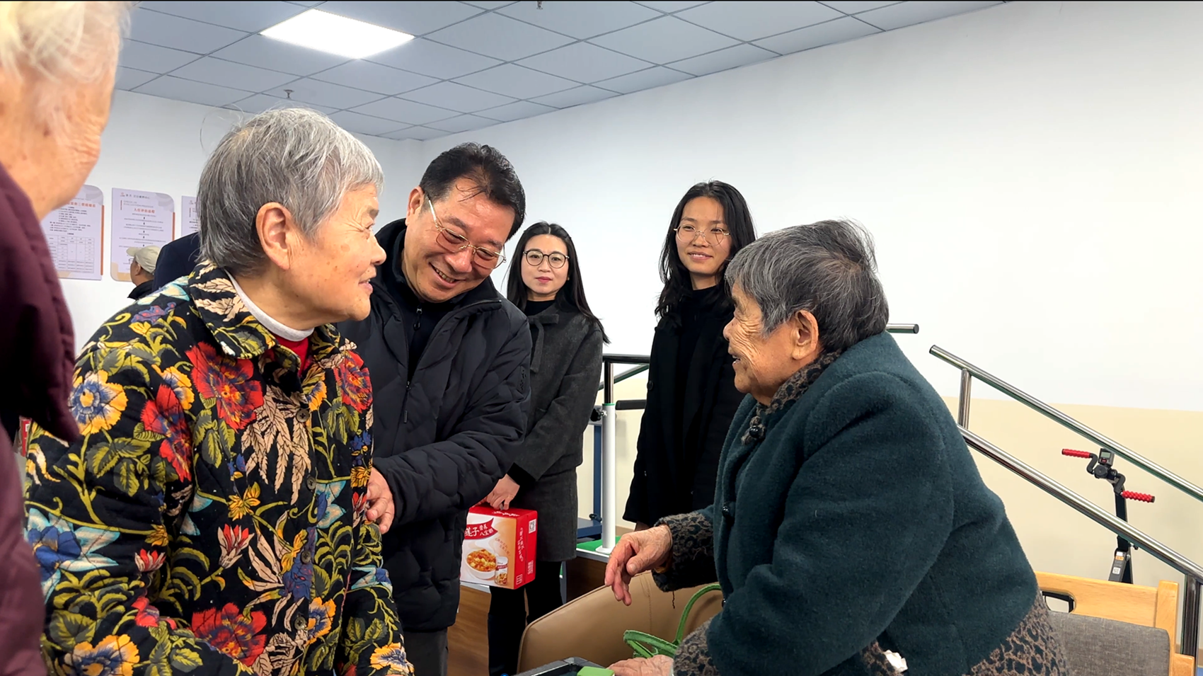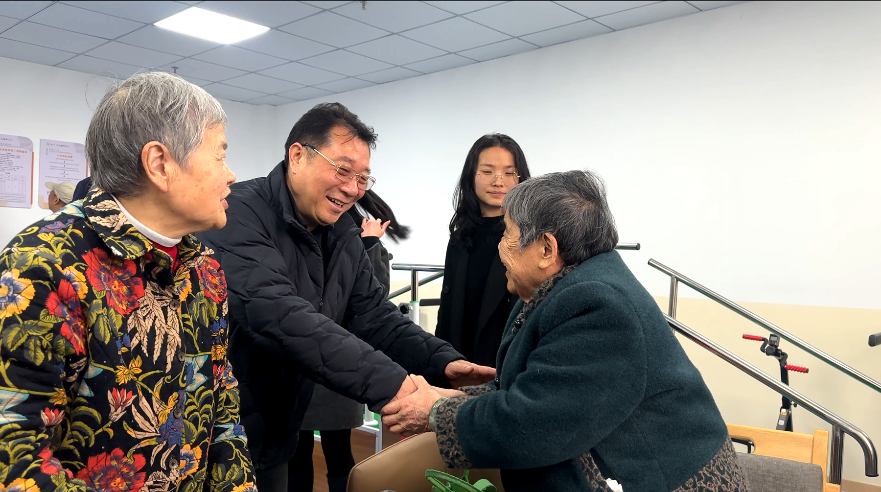 走进康养中心,暖意融融。肖举涛董事长一行逐一探望了每一位老人,与他们亲切握手、促膝交谈。董事长详细询问老人们的饮食起居、身体状况,倾听他们的心声与需求,叮嘱他们保重身体、保持乐观心态,在康养中心安享幸福晚年。